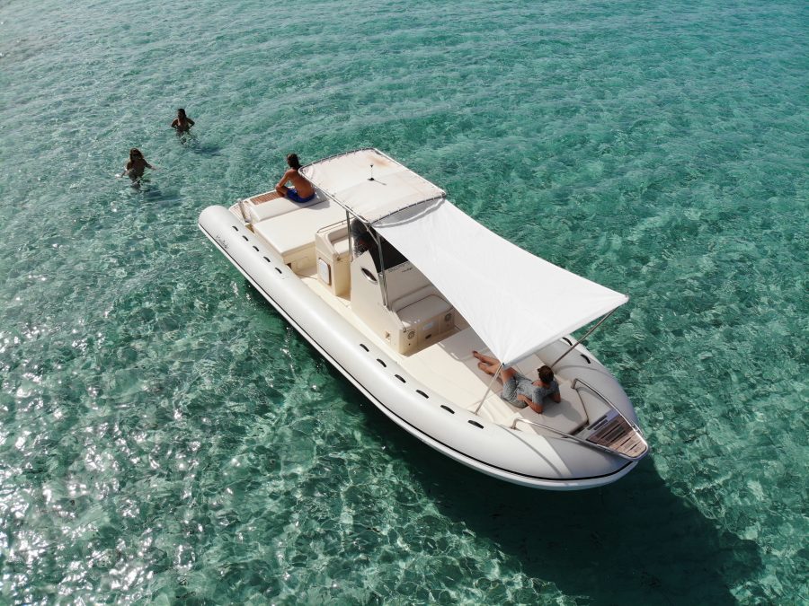 Discover Ibiza and Formentera on this spacious, comfortable semi-rigid boat with ample seating, solariums, and all the amenities for an unforgettable day.11 passengers including the captain